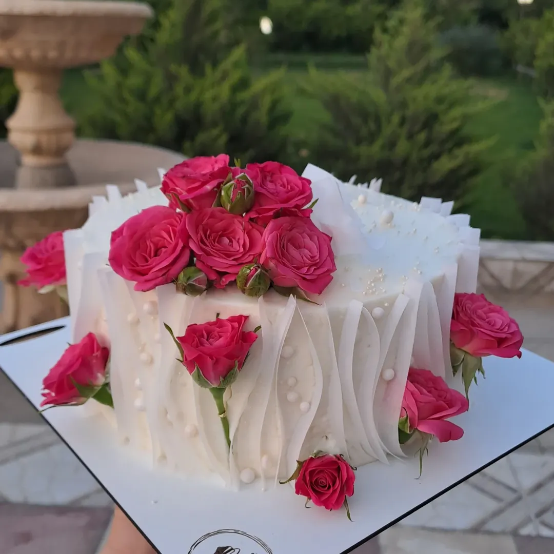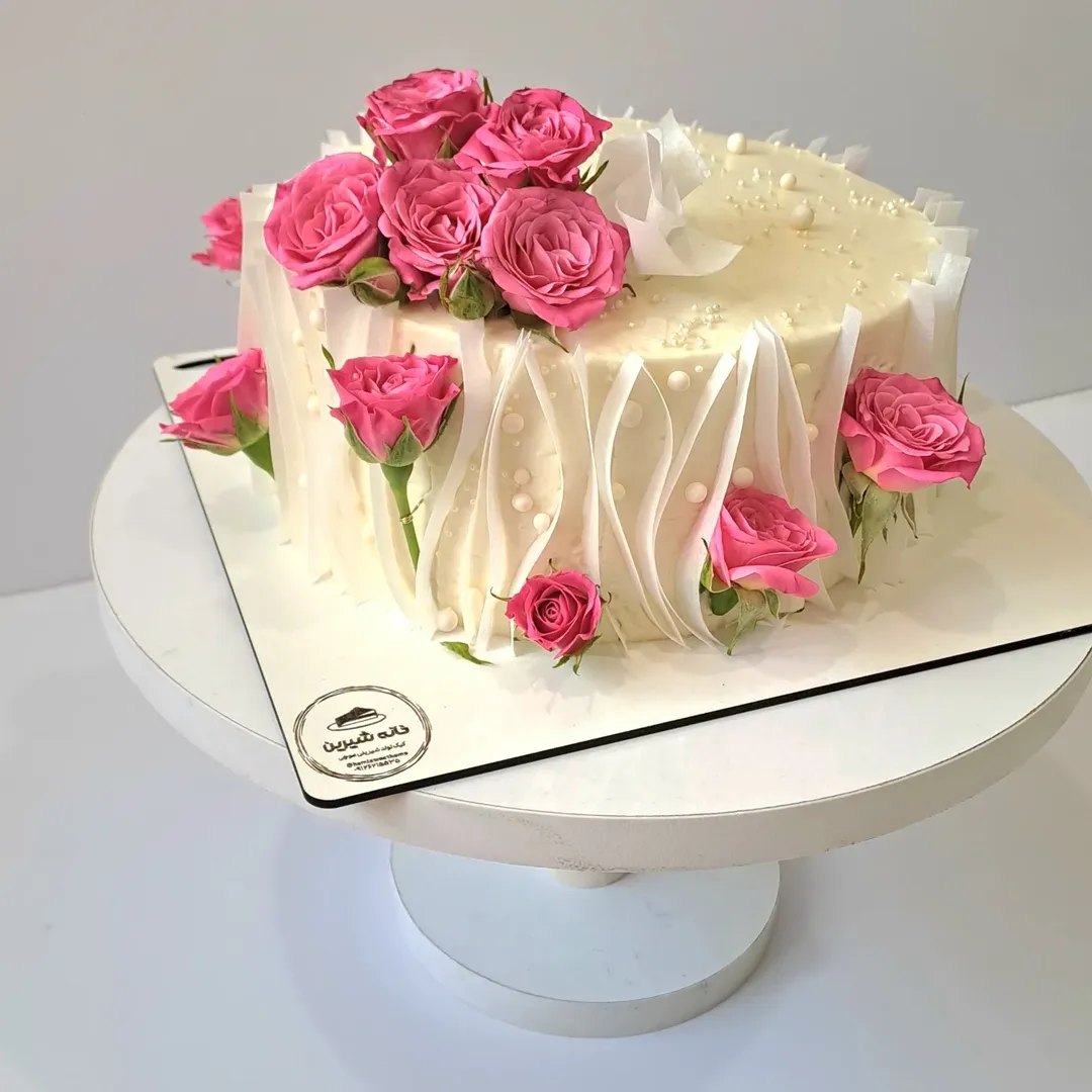 کیک تولد با گل طبیعی و کاغذ خوراکی